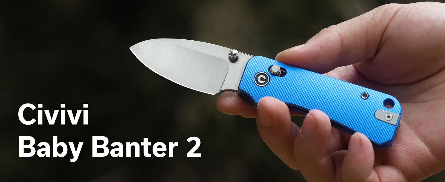 The CIVIVI Baby Banter 2 C23074-2 is a compact and highly capable everyday carry folding knife designed by Ben Petersen, combining premium materials with a practical, pocket-friendly design. It features a 2.34-inch drop point blade made from Nitro-V stainless steel, delivering excellent corrosion resistance, strong edge retention, and dependable toughness for daily cutting tasks. The blade opens smoothly using dual thumb studs, allowing quick and controlled one-handed deployment whenever needed.