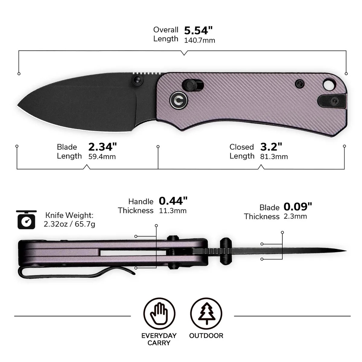 2.34″ drop point blade ideal for everyday cutting tasks
