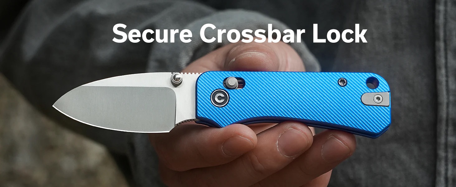 CIVIVI Baby Banter 2 Thumb Stud & Crossbar Lock Knife C23074-1, 2.34″ Satin Nitro-V Blade with Blue Aluminium Handle