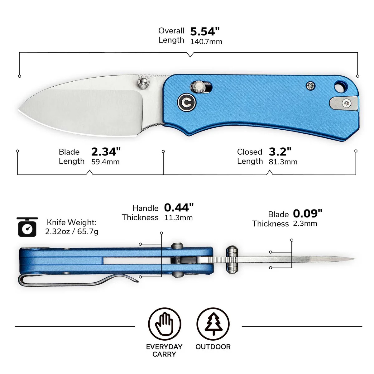• Knife Weight: Approx. 2.32 oz (65.7 g)
