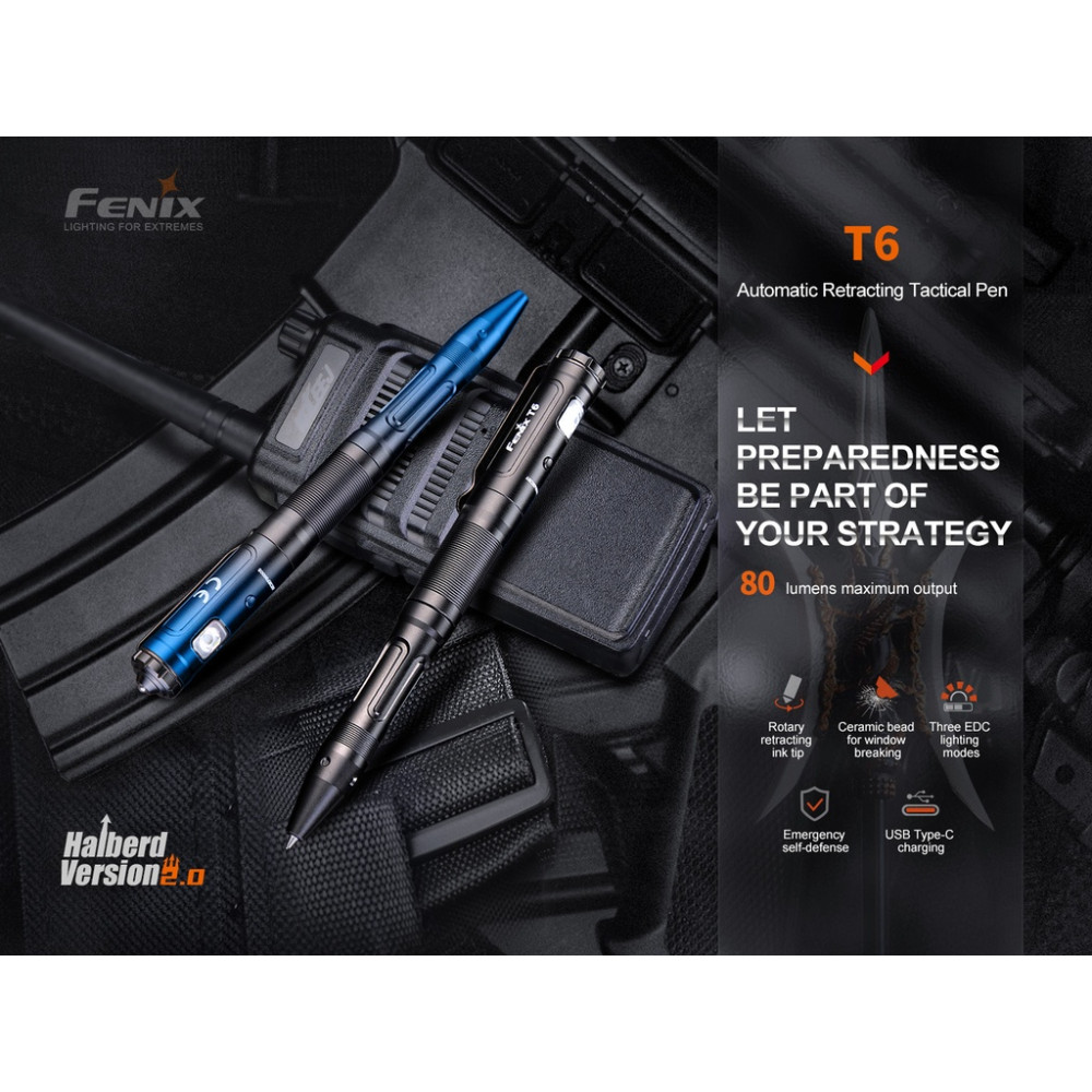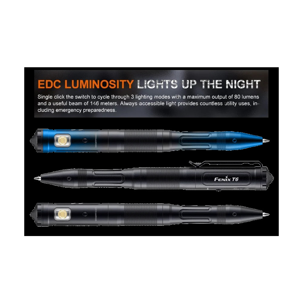 The Fenix T6 Tactical Rechargeable Penlight (Blue) combines dependable illumination with a sleek, modern colourway, making it a standout option for everyday carry and professional use. Designed in a compact pen-style format, this rechargeable torch is ideal for inspections, daily tasks, emergency situations, and on-the-go lighting where portability matters. The durable aluminium body features a hard-anodised blue finish for added scratch resistance and long-term durability. With convenient USB recharging, the Fenix T6 eliminates the need for disposable batteries while delivering consistent, reliable performance in a slim, pocket-friendly design.