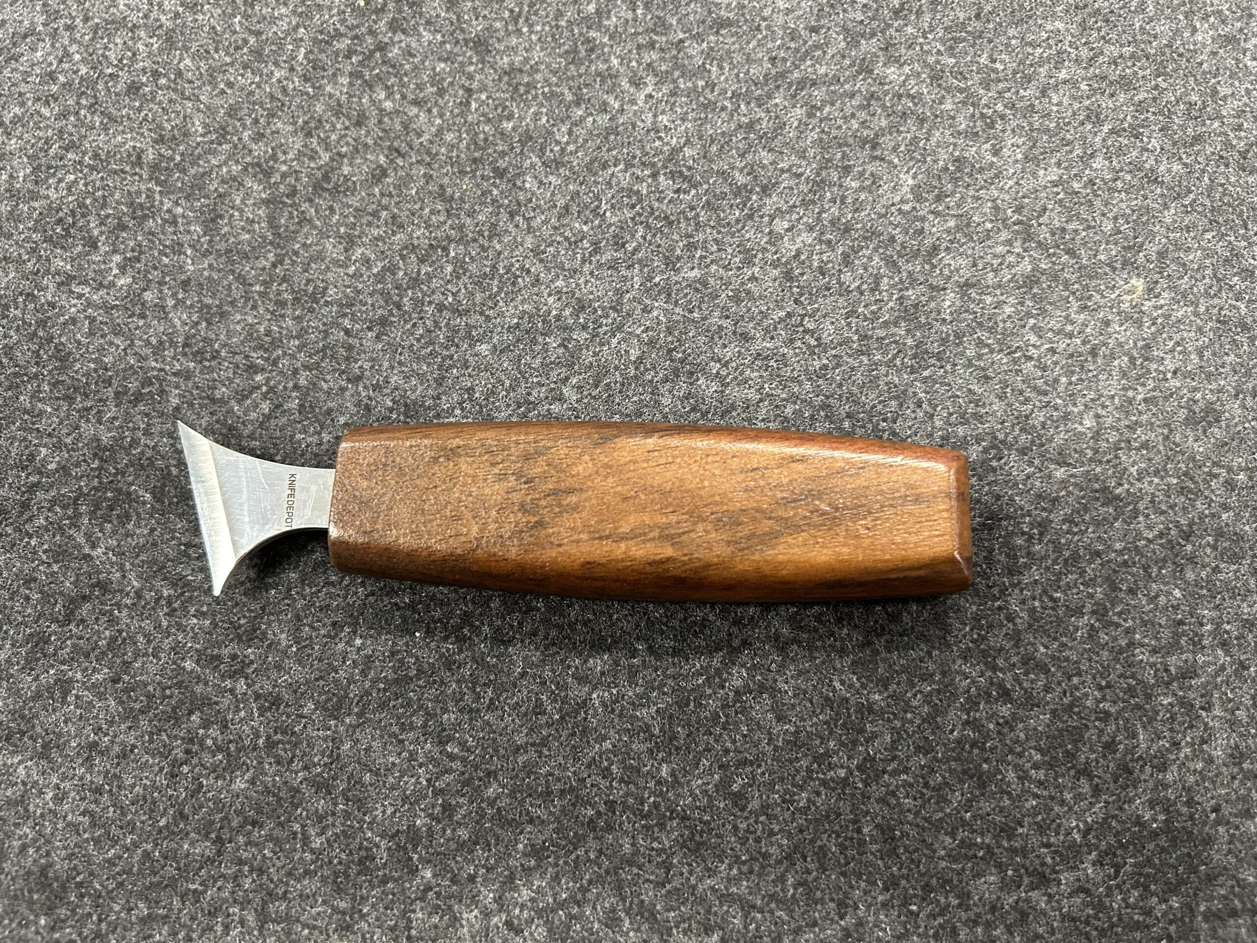 The geometric carving knife, as the name suggests, is used mostly for geometric woodcarving. Designed for cutting geometric patterns in the wood, aligning the background with relief wood carvings and other work with wood carvings, this knife will be one of your favourite tools. The knife for geometric wood carving has a special blade shape, which allows you to cut not only towards yourself but also away from yourself. It suits both right- and left- handed users.