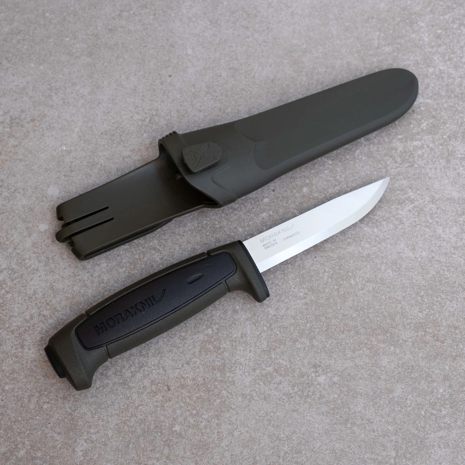 The Morakniv Basic 546 (S) Black/MG is a dependable, no-nonsense fixed blade knife designed for everyday cutting tasks, trade work, and general outdoor use. Featuring a stainless steel blade, this knife offers excellent edge retention, corrosion resistance, and easy maintenance, making it well suited to demanding environments. The ergonomic polymer handle provides a secure, comfortable grip, even during extended use, while the high-visibility black and military green colour scheme adds a practical, professional look. Supplied with a durable polymer sheath, the Basic 546 is easy to carry on a belt or tool rig, delivering trusted Morakniv performance at exceptional value.